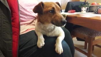 Terrassentür. Weinend vor Glück schloss Frauchen ihr abgemagertes Tier