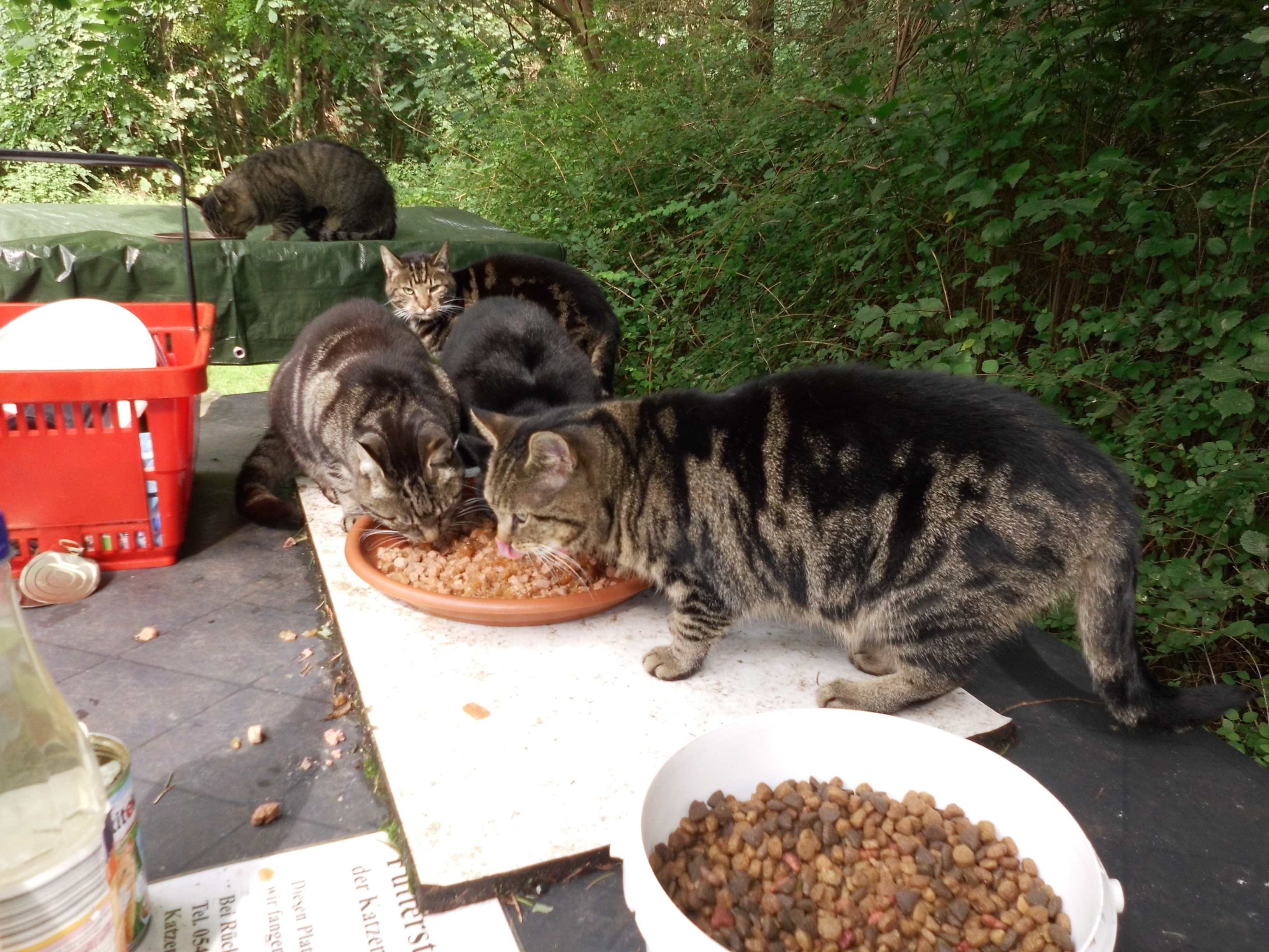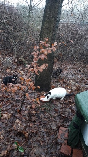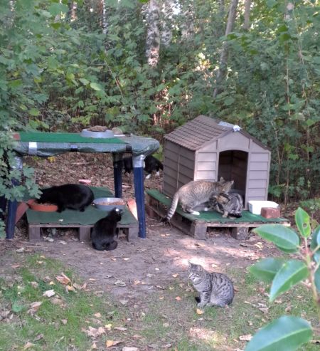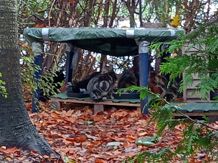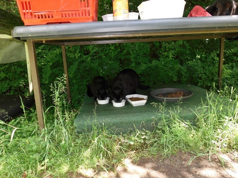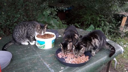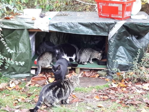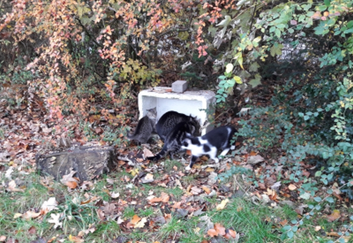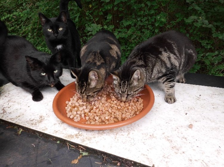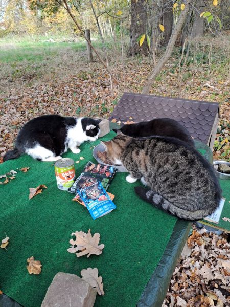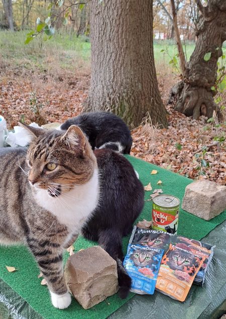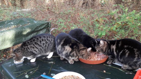 versorgen ca. 60 kastrierte herrenlose Katzen täglich an kontrollierten