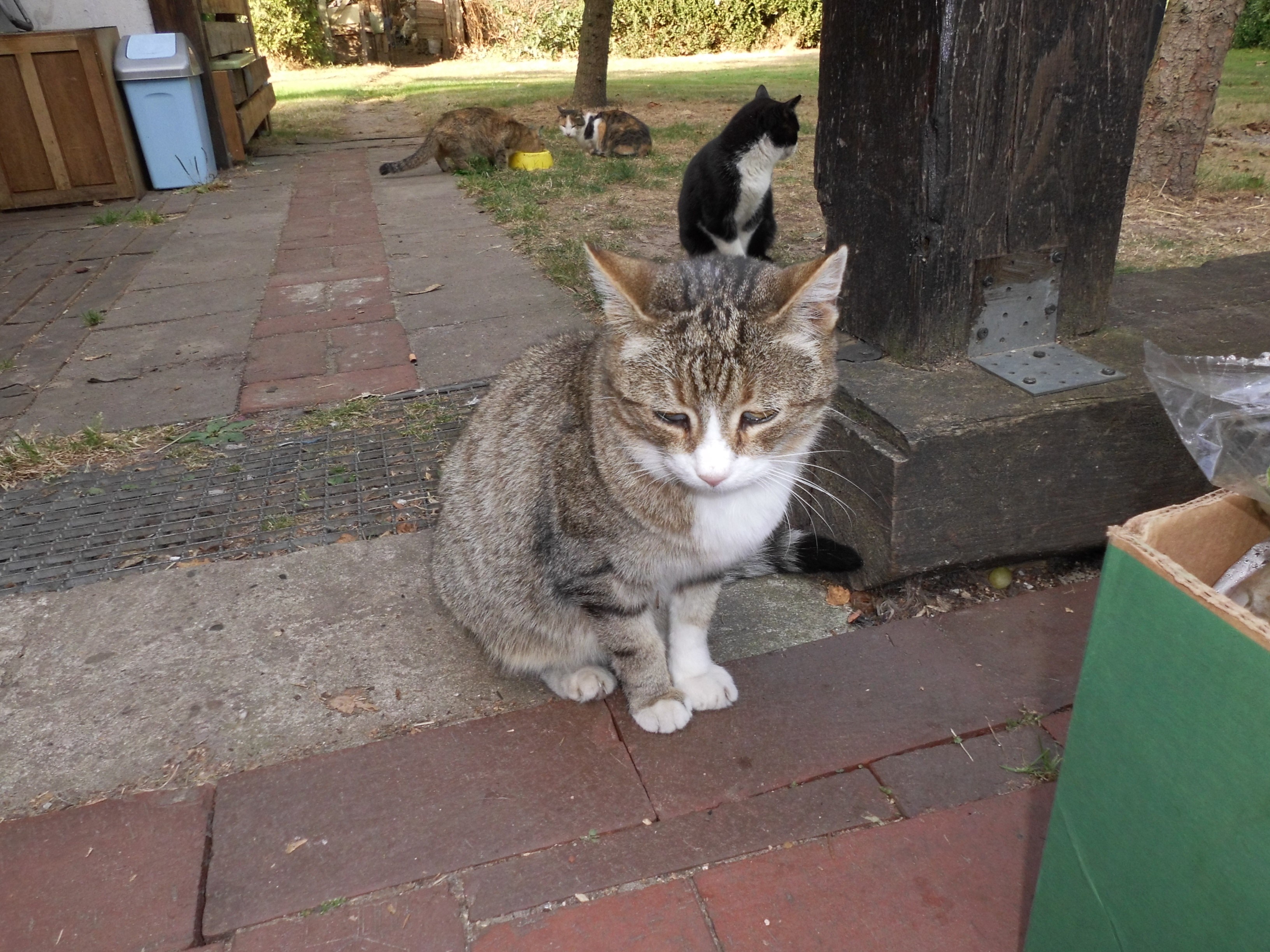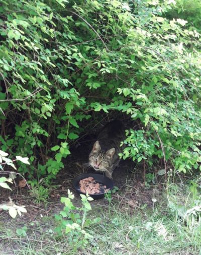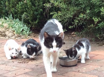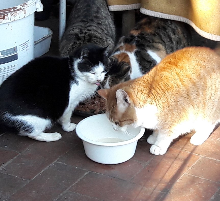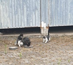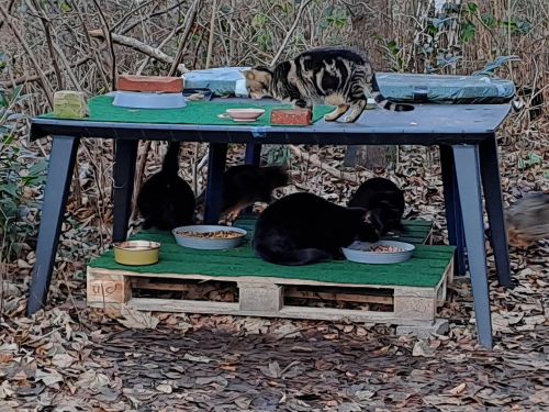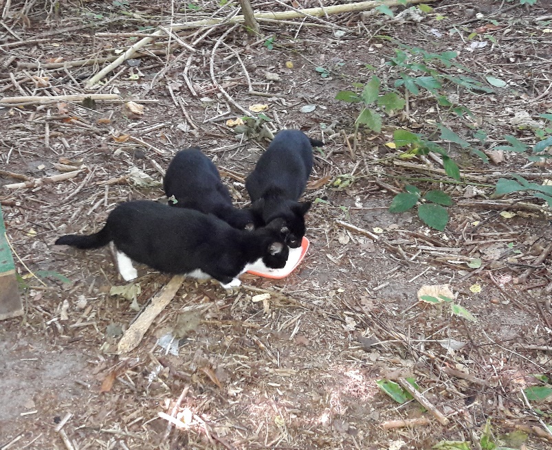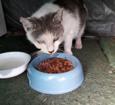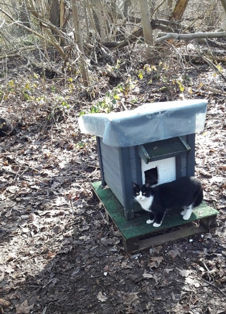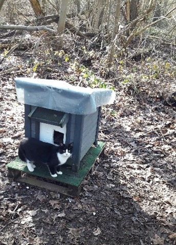 versorgen ca. 60 kastrierte herrenlose Katzen täglich an kontrollierten