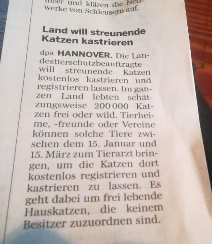 Hilker (Gründungsmitglied der Katzenhilfe Bramsche) sagt: „ Über so viel
